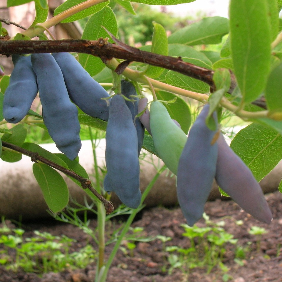 Ленинградский великан — чудесный сорт отечественной селекции, характеризуется крупными темно-синими ягодами длиной до 4 см. Средняя масса каждой — от 1,3 до 1,5 граммов. Форма удлиненная, с круглым основанием, плоской верхушкой. Покрытие сизым восковым налетом – среднее. Кроме того, неприхотливое и выносливое взрослое растение (при достижении возраста 5-6 лет) способно поразить своими урожаями. Один куст способен дать до 3 кг отборных спелых ягод; максимальный показатель – около 5 кг. Плоды созревают неравномерно, с середины июня по конец июля. На ветвях располагаются крупными гроздьями, по причине чего легко собираются. Осыпаемость слабая. В ягодах жимолости очень много витаминов и минералов. В ягодах содержатся витамины: В1, В2, В9, С, Р, А. В состав ягод входят лимонная, щавелевая, яблочная и янтарная кислоты, пектины, дубильные вещества. Наконец, очень много микроэлементов: калия — 70 мг, магния — 21 мг, фосфора — 35 мг, кальция — 19 мг, натрия — 35 мг, йода — 90 мкг. Многие витамины и элементы находятся в соединениях, усиливающих действие друг друга.